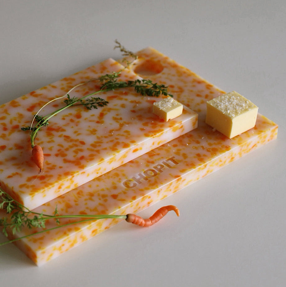 At CHOPIT, we utilise the pre-consumer recycling method. By using this method, we are able to use the scrap material from manufacturers, before the product has reached the consumer. This ensures the plastic is food safe and free from nasty chemicals whilst maintaining integrity towards our sustainability goals.